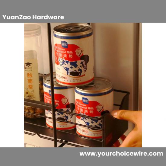 A stylish Matt Black Iron 2-Tier Kitchen Storage rack Kitchen Condiment Organizer Wire Metal Holder adds contemporary feeling to your kitchen. 2-Tier storage rack design offers multi-layer storage drawer for easy management of different items and provides an easy way to access with smoothly slide out which help to resolve clutter and accessibility issues to increase the organize capabilities.