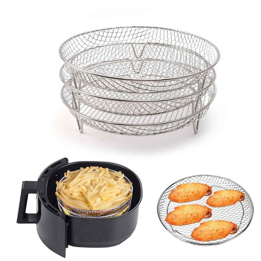 RUST RESISTANT MATERIAL – Crafted from high-quality, rust-resistant materials to ensure air fryer basket with stands frequent use, washing, and time, eliminating corrosion and degradation.